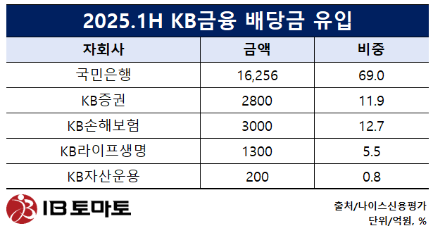 KB금융 관계자는 <IB토마토>에 "계열사의 자본 여력에 따라 배당을 받고 있다"라고 말했다.
