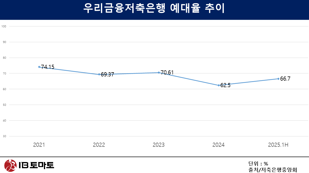 대형 저축은행에도 마찬가지다. 같은 기간 5대 저축은행의 예대율은 SBI저축은행이 97.7%, OK저축은행이 96.7%, 한국투자저축은행 99.6%, 웰컴저축은행 89.8%, 애큐온저축은행 98.9%다. 우리금융저축과는 약 30%p 차이다.