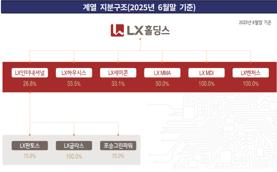 LX홀딩스(383800) (7,060원 ▼60원 -0.85%)가 2022년 설립한 100% 자회사로 구형모 사장이 대표이사 겸 이사회 의장으로 속해있다. 내부 계열사 중 오너 2세가 직접 경영에 참여하는 유일한 회사라는 점에서 상징성도 크다. LX MDI는 △ 경영 컨설팅 △ 계열사 사업 방향 및 전략 수립 지원 △ IT 및 업무 인프라 혁신 △ 인재 육성 등 다양한 프로젝트를 수행하며 그룹의 미래 준비를 위한 경영개발원 역할을 맡고 있다.