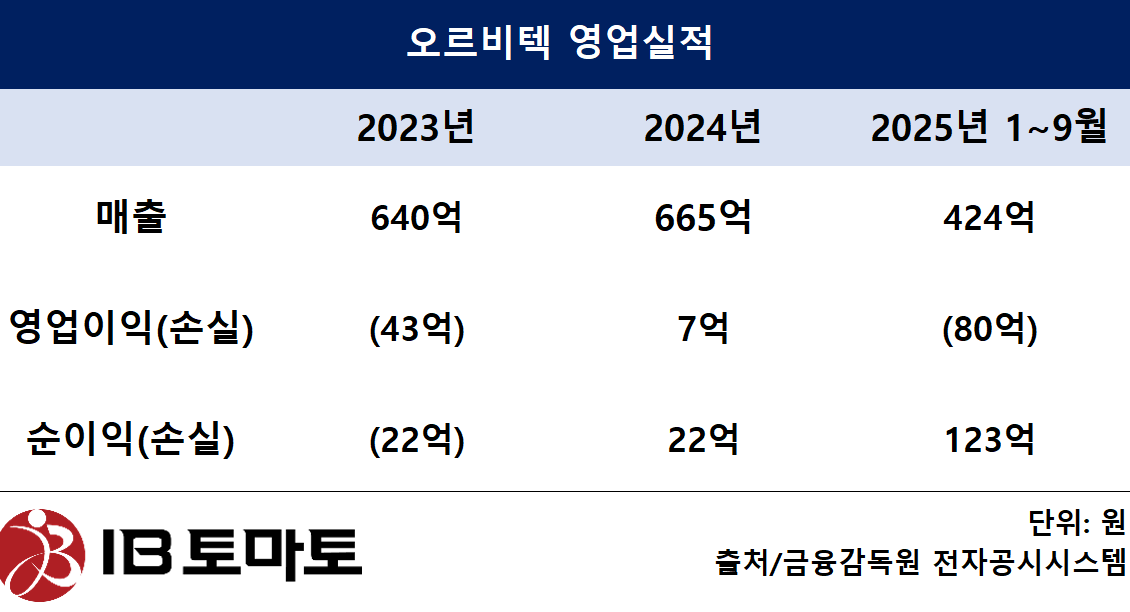이번 자금 조달은 오르비텍의 현금이 부족했기 때문으로 풀이된다.