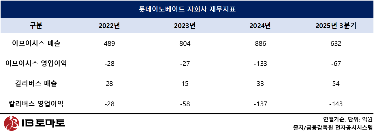 롯데이노베이트(286940) (28,000원 ▲250원 +0.89%)를 위협하는 모습이다. 이들 자회사의 지속적인 영업손실과 당기순손실로 풋옵션 부채와 무형자산 손상차손 리스크가 부각되고 있기 때문이다. 이브이시스의 경우 적격 기업공개(IPO)에 실패할 경우 수백억원의 원금과 이자를 상환해야할 수 있고, 칼리버스는 서비스의 현금창출력을 입증하지 못할 경우 개발비로 인식한 무형자산이 손상차손으로 처리될 수 있다. 향후 수익성 개선과 재무구조 안정이 리스크 해소의 핵심 변수가 될 전망이다.