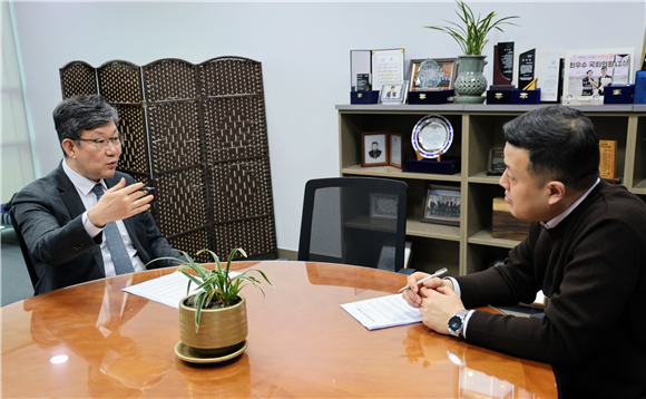 김남근 더불어민주당 의원(왼쪽)이 IB토마토 유창선 금융시장부 부장과 인터뷰하고 있다. (사진=IB토마토)